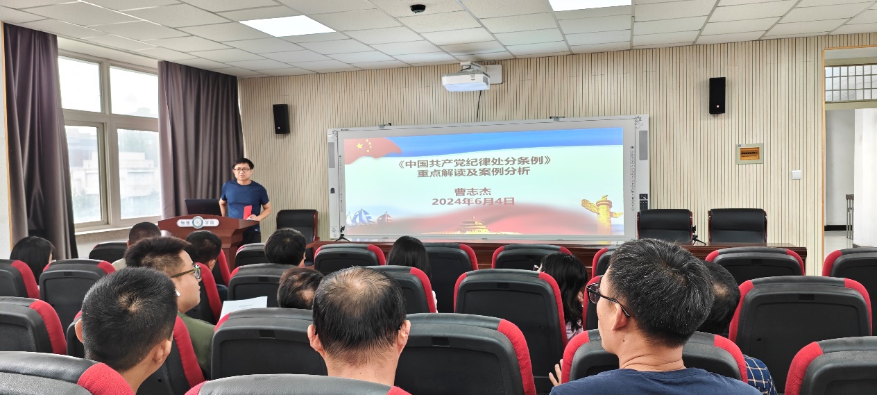 为持续深化党纪学习教育,2024年5月8日,我院启动开展为期2天的党纪学习教育专题读书班,采取集中领学、个人自学、交流研讨等多种形式,推动党纪学习教育走深走实。学院党总支理论学习小组成员,各党支部委员参加学习会。党的纪律是党的各级组织和全体党员必须遵守的行为规则,是维护党的团结统一、完成党的任务的保证,是党员为人做事的警戒线。每一个共产党员特别是党员干部都要增强纪律意识、规矩意识,进一步养成在受监督和约束的环境中工作生活的习惯,把遵规守纪刻印在心,加强党纪学习教育,为推动学院事业高质量发展提供坚强的纪律保障。
