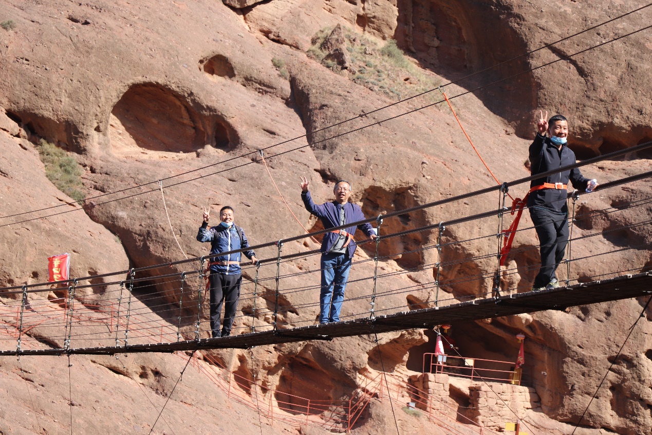 下午14时许,我们辗转到达中卫寺口子景区。秋日独有的阳光,格外明媚,寺口子美景让人流连忘返,苏武牧羊的遗址更是引发了我们对其宁死不屈情愿牧羊精神的思考。老师们个个兴致盎然,一边爬山一边观景,一路说说笑笑,分享着工作之余大自然带来的那份轻松与惬意。爱好摄影的老师们则不忘捕捉精彩的瞬间、快乐的场景,将这美好的画面一一定格。