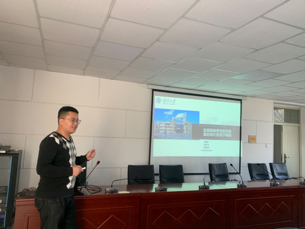 2023年11月22日下午,WilliamHILL中国周震亚老师和黄永巍老师在博远楼217为我院教师作“金属玻璃塑性的实验室时间尺度原子模拟”和“拓扑绝缘体量子点中的太赫兹辐射”专题报告会。