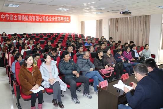 胡军权副总经理代表公司发言,他主要介绍了中节能(宁夏)太阳能公司的发展状况和企业专业人才方面的迫切需求。他强调指出企业与高校联合建立实习实践基地是培养创新型人才的需要,也是校企开展深入合作的基础。