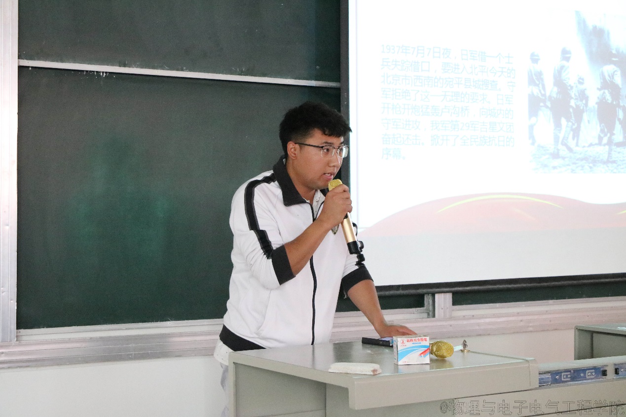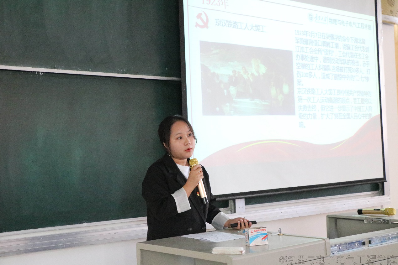 为深入推进党史学习教育,回顾历史,砥砺前行。5月19日,物理与电子电气工程学院在怀远一教231教室举行“1+1”党史学习教育第三次集体活动暨“讲述百年故事,传承红色基因”故事分享会,全体学生党员参加了学习。