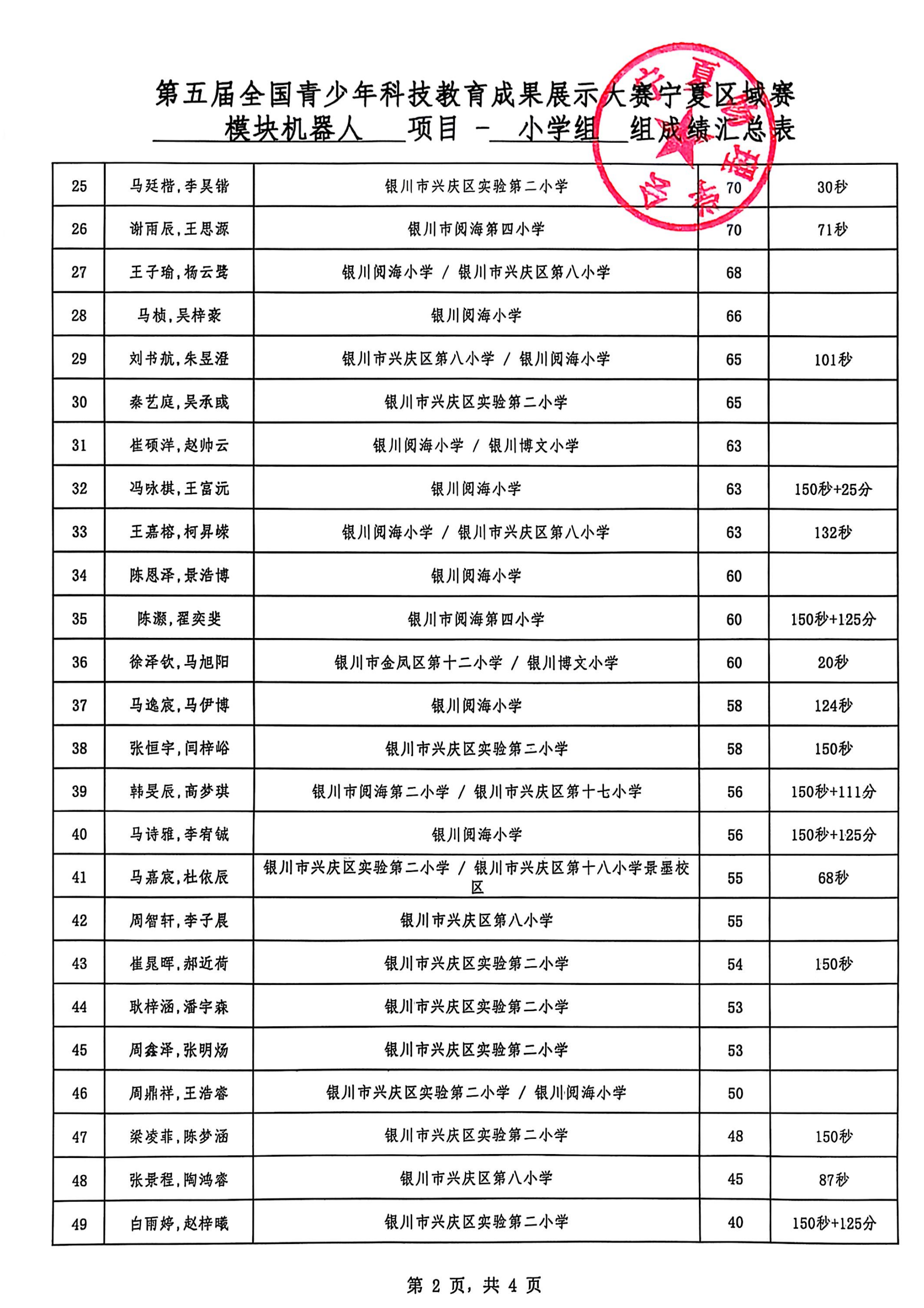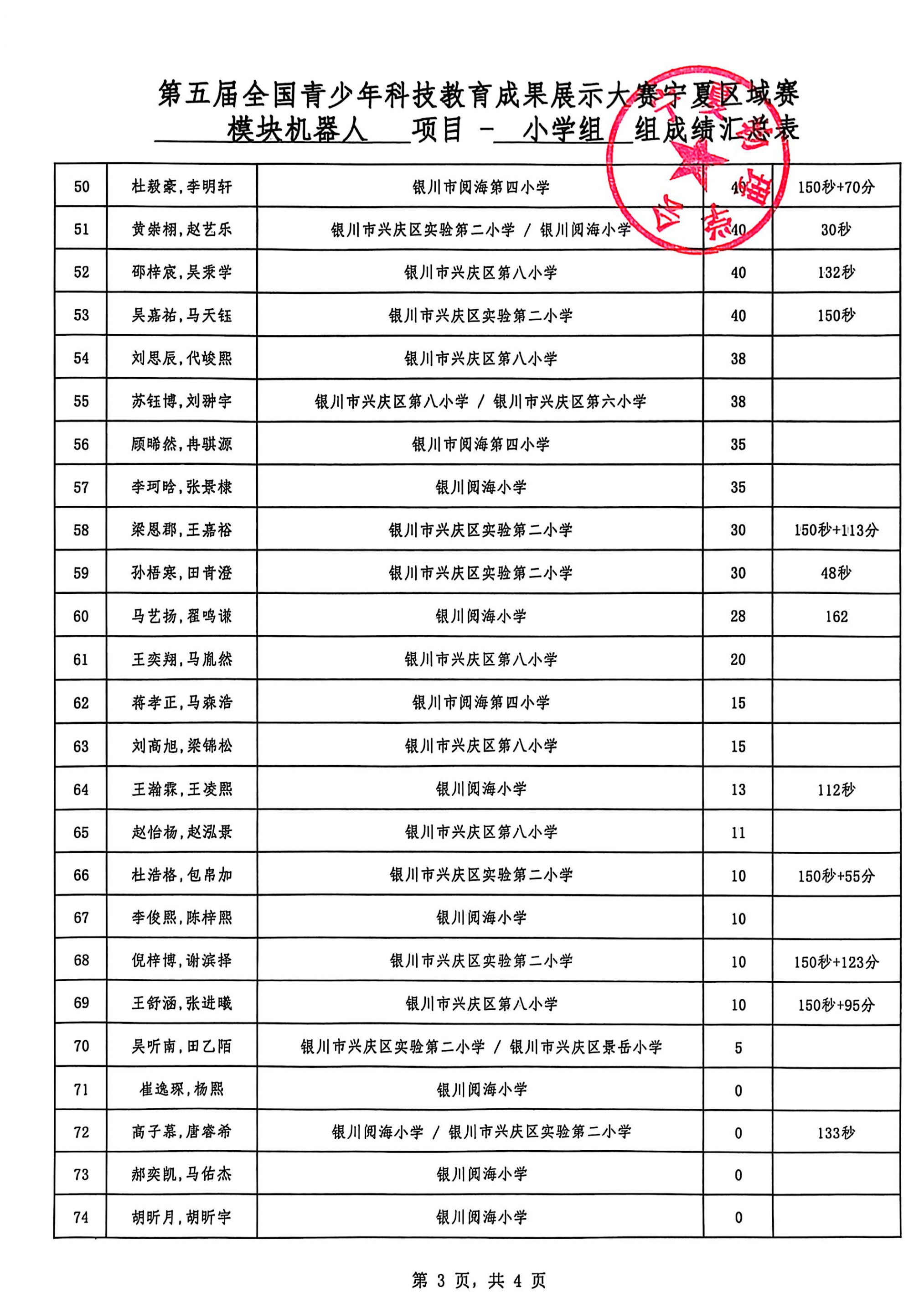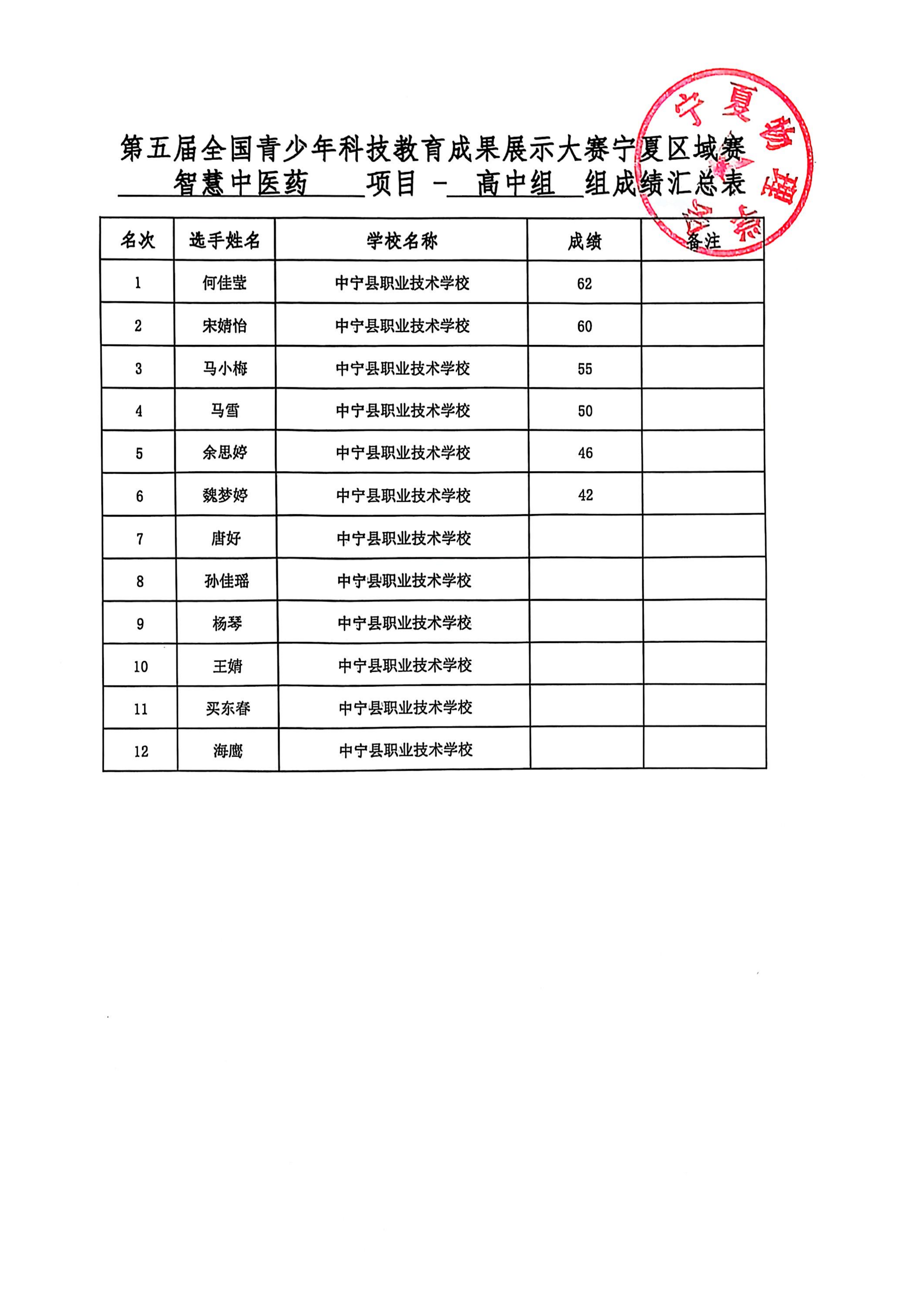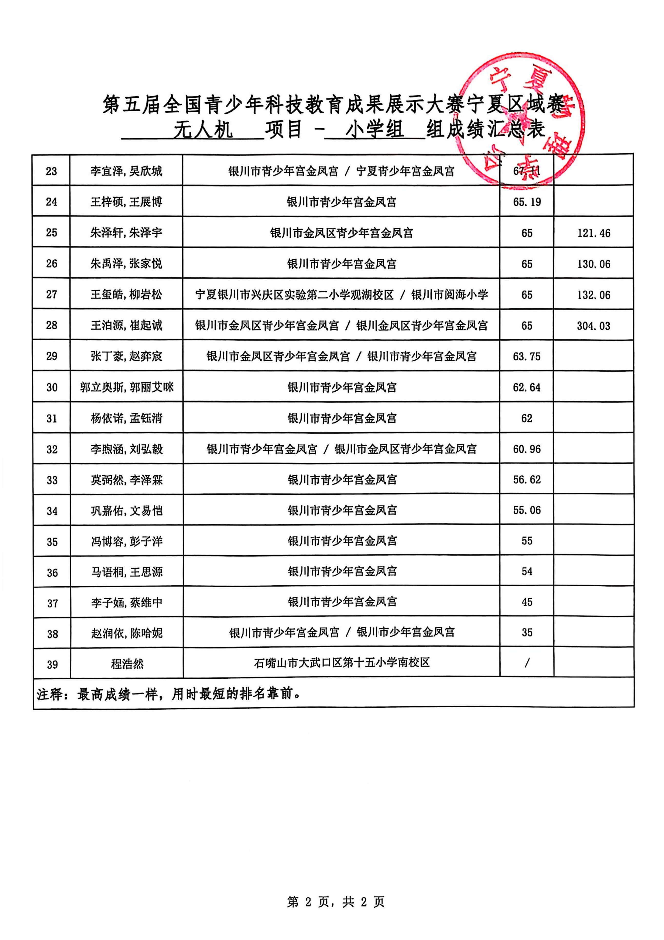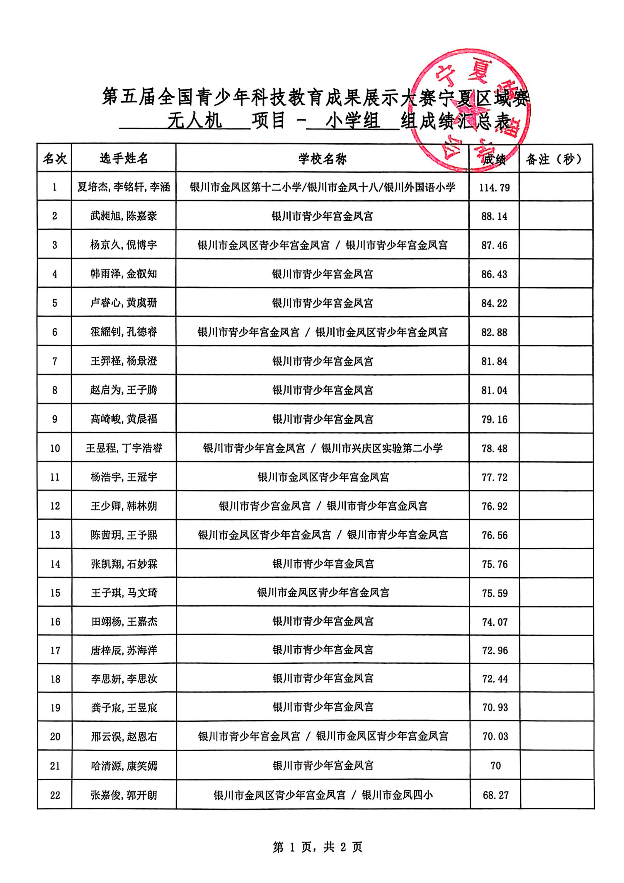 第五届全国青少年科技教育成果展示大赛宁夏区域赛线下赛项成绩公示