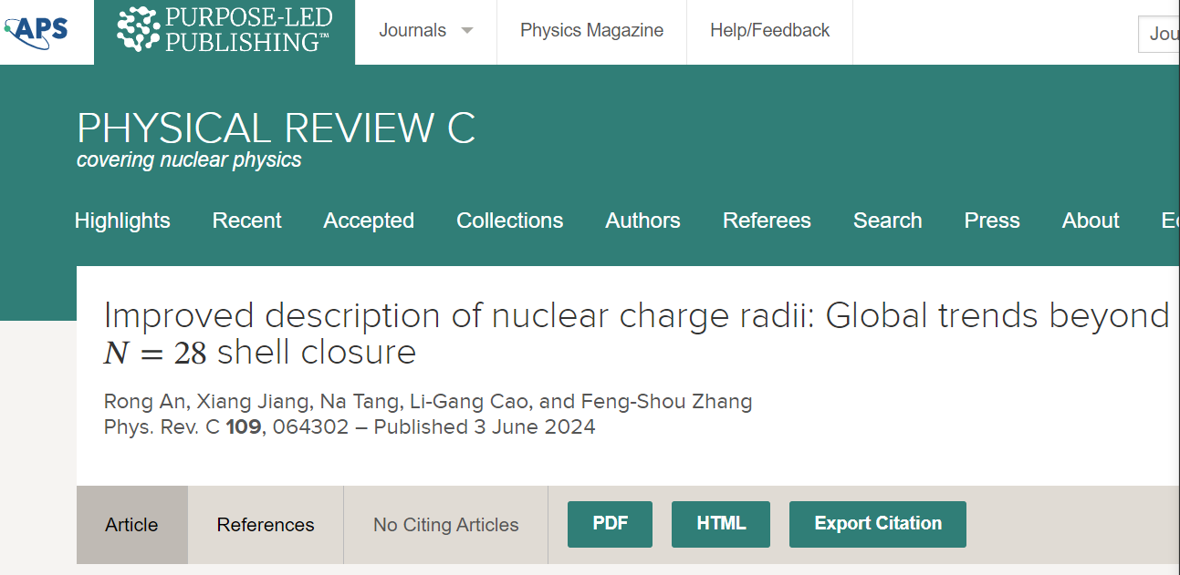我院安荣博士和唐娜博士在《Physical Review C》核物理专业期刊发表高水平论文