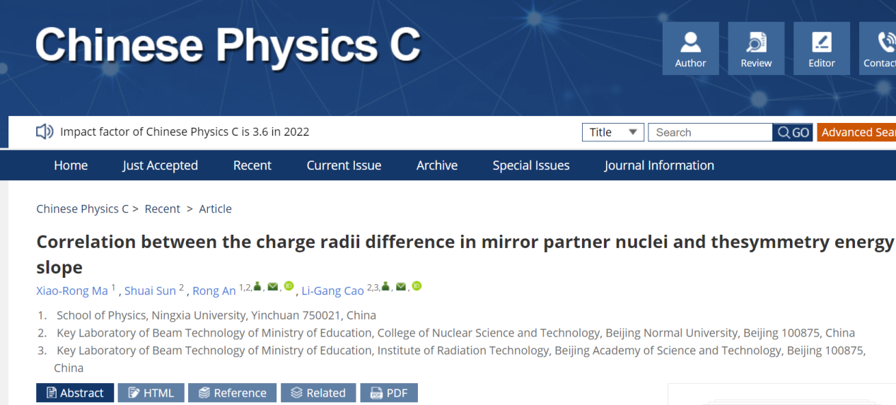 WilliamHILL中国本科生马小荣在国际学术期刊《Chinese Physics C》发表高水平论文