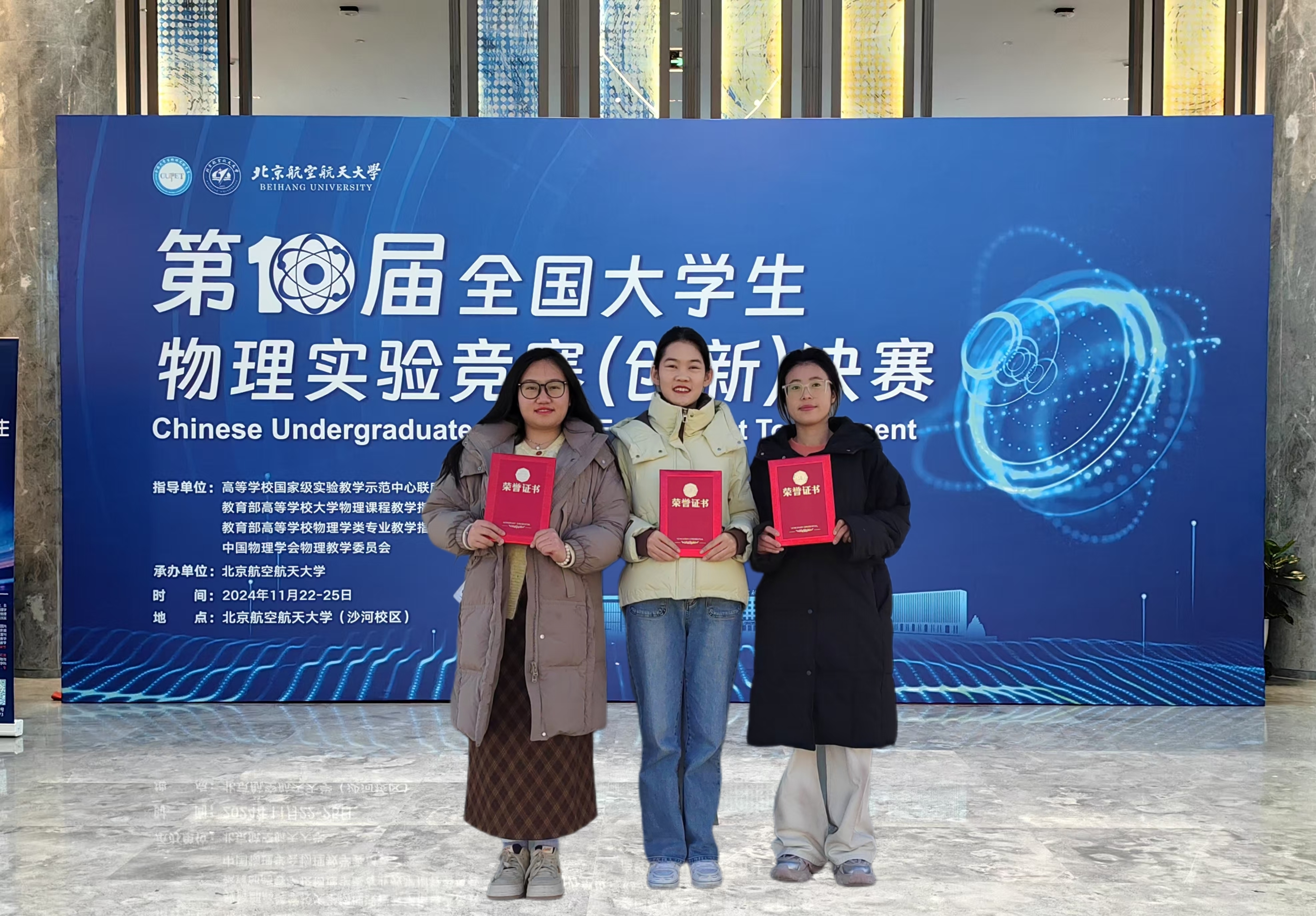 WilliamHILL中国学子在第十届全国大学生物理实验竞赛(创新)决赛中喜获佳绩