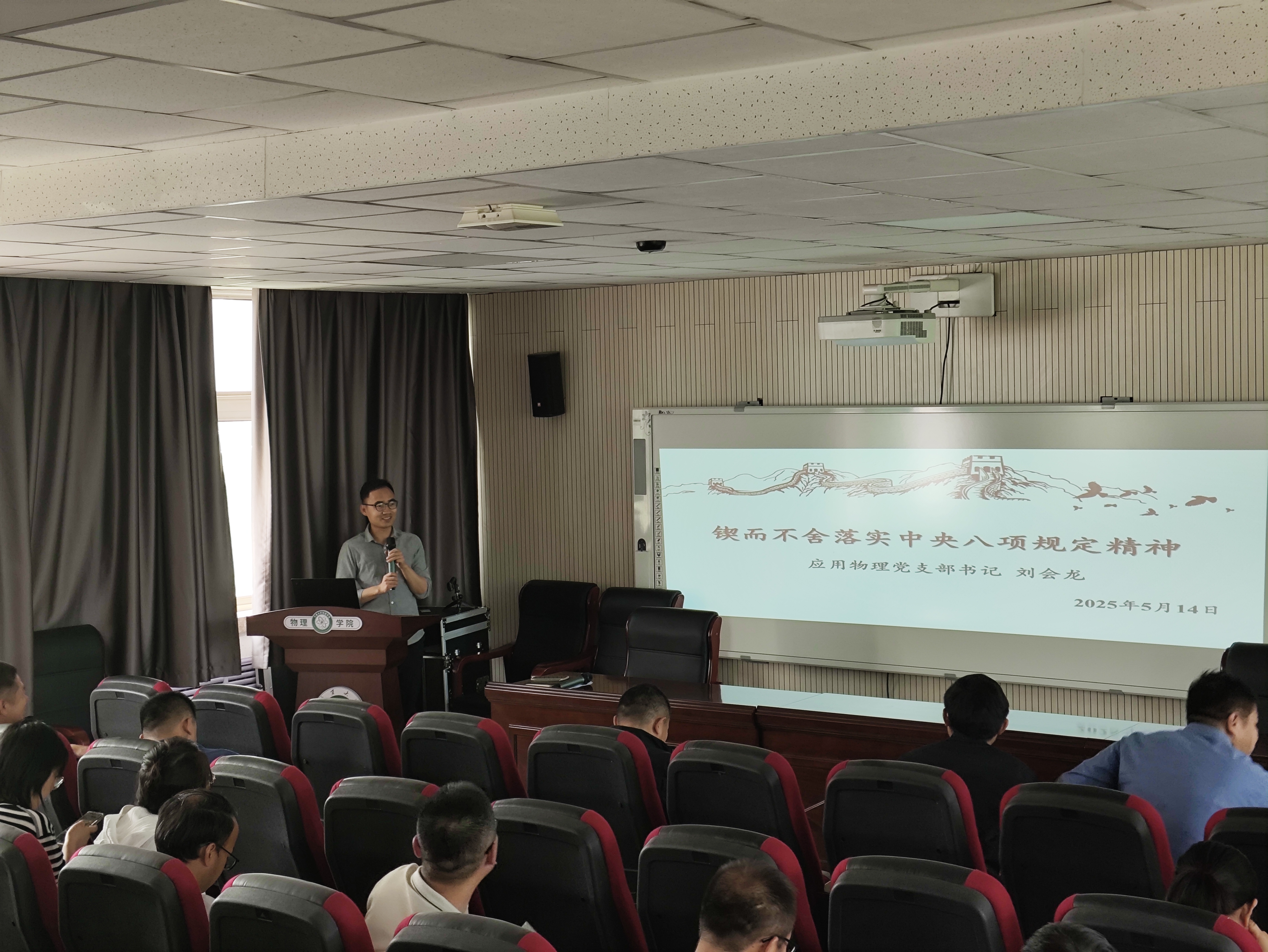 为深入贯彻落实全面从严治党要求,进一步增强全院教师的纪律意识和规矩意识,2025年5月14日,WilliamHILL中国在博远楼321会议室召开全院教师大会,学院应用物理教工党支部书记刘会龙以“锲而不舍落实中央八项规定精神”为主题,为全体党员教师上了一堂深刻的党课。刘会龙书记在党课中系统解读了中央八项规定精神的核心要义与实践要求。他结合习近平总书记在《求是》杂志发表的重要文章《锲而不舍落实中央八项规定精神,以优良党风引领社风民风》,强调作风建设是全面从严治党的重要切入点,必须常抓不懈、久久为功。中央八项规定不是一阵风,而是新时代全面从严治党的徙木立信之举,全体党员教师要深刻认识作风问题的本质是党性问题,始终保持赶考的清醒,以优良党风带动师德师风建设。此次党课引发了全体教师的强烈共鸣。与会教师纷纷表示,将以此次学习为契机,自觉对标对表,把纪律规矩挺在前面,做到心有所畏、言有所戒、行有所止