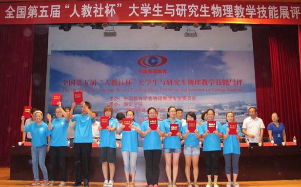 由中国教育学会物理教学专业委员会主办的“全国第五届‘人教社杯’大学生与研究生物理教学技能展评”, 2013年7月26日至28日在河北保定学院举行。