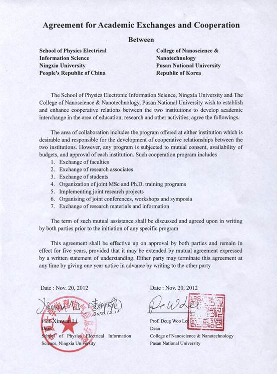 williamhill物理电气信息学院与韩国釜山大学纳米科学与纳米技术学院于2012年12月12日正式签署学术交流与合作协议。