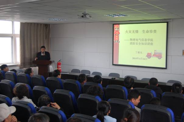 2014年4月23日下午,我院全体教职工在学院217学术报告厅参加消防安全知识培训,会议由学院党委书记车进主持,会议邀请学校保卫处丁维凡、齐周济进行讲座和示范。